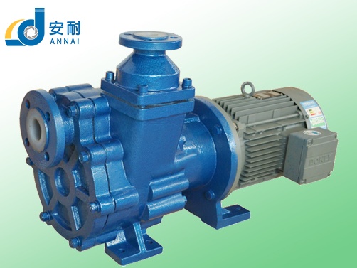 泵的驱动装置采用主动磁铁联轴器直接装在电机轴上,泵室完全封闭,通过磁力偶合间接驱动转子组合上的叶轮旋转,确保整机组完全无泄漏。ZCQ氟塑料磁力自吸泵采用电机直联式结构,由中间支架支撑,结构紧凑,拆卸维护方便。